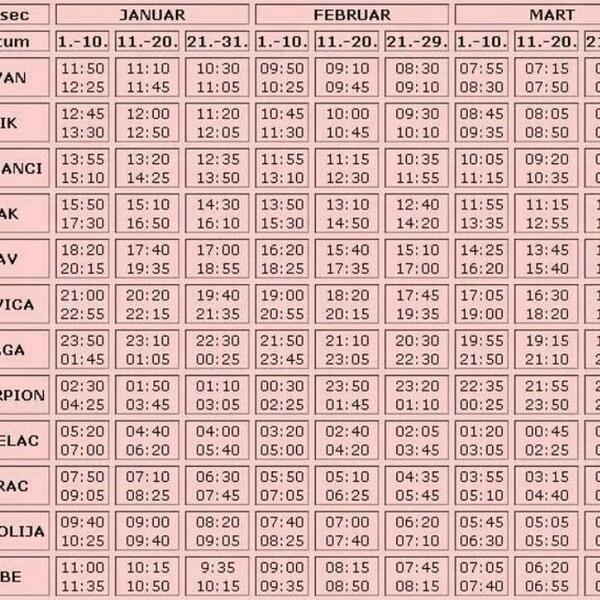 U galeriji ispod u tabelama pronađite, mesec rođenja, dekadu u kojoj ste rođeni i sat rođenja. Horoskopski znak kod kojeg se spajaju sva tri parametra otkriva vaš podznak.