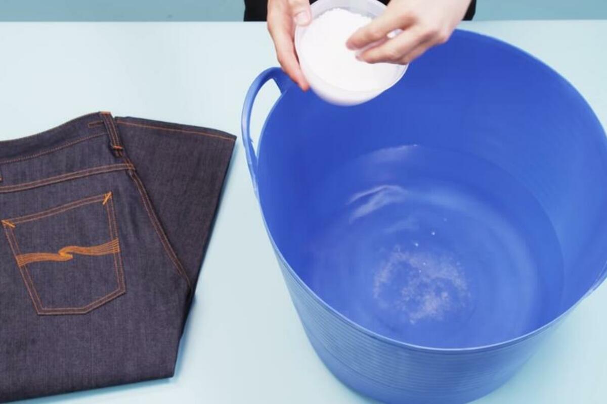 Kako biste ovo mogli da isprobate, moraćete dodati malo destilovanog alkoholnog sirćeta i soli u posudu ili kantu punu vode. So pomaže da se boja učvrsti u farmerkama, dok sirće sprečava ispuštanje boje, zadržavajući boju u vlaknima. So ima i druge svrhe prilikom čišćenja jer se može koristiti i na drugim tkaninama za posvetljivanje boja i uklanjanje mrlja.