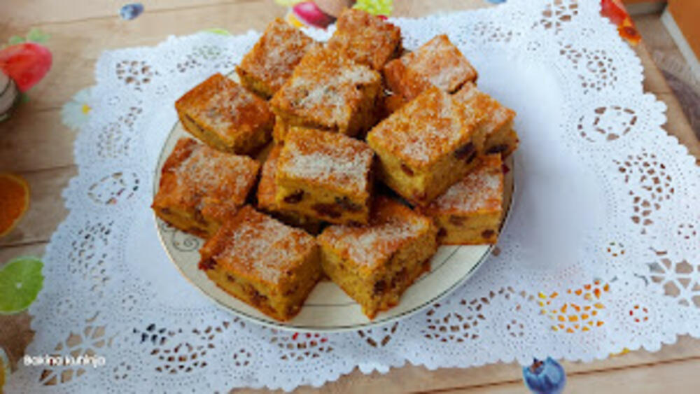 Sve polako izmešati Sipati u podmazan pleh i peći na 200 stepeni C oko 40 minuta.