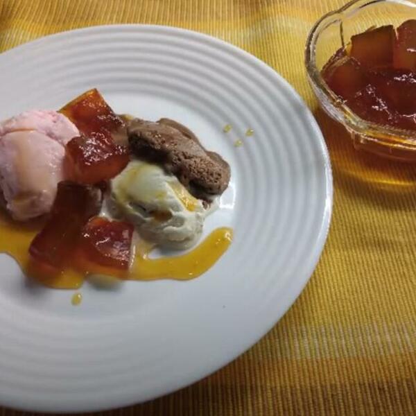 - Zagrejte pola litre vode i, neprestano mešajući, postepeno dodajite šećer. Kad provri, špinujte oko pola sata, pa dodajte kockice i kuvajte oko sat vremena.