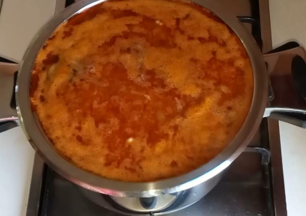 6. Dodajte pastu u čorbu nakon ribe, pa lagano mešajte nekoliko minuta kako biste postigli odgovarajuću gustinu čorbe.