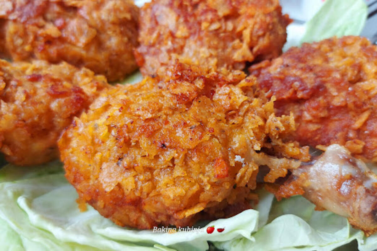 Batake uvaljati u brasno umucena jaja u koje ste izdrobili 4 cena belog luka, zatim u prezle pa u jaja i u korniflks koji ste malo usitnili.