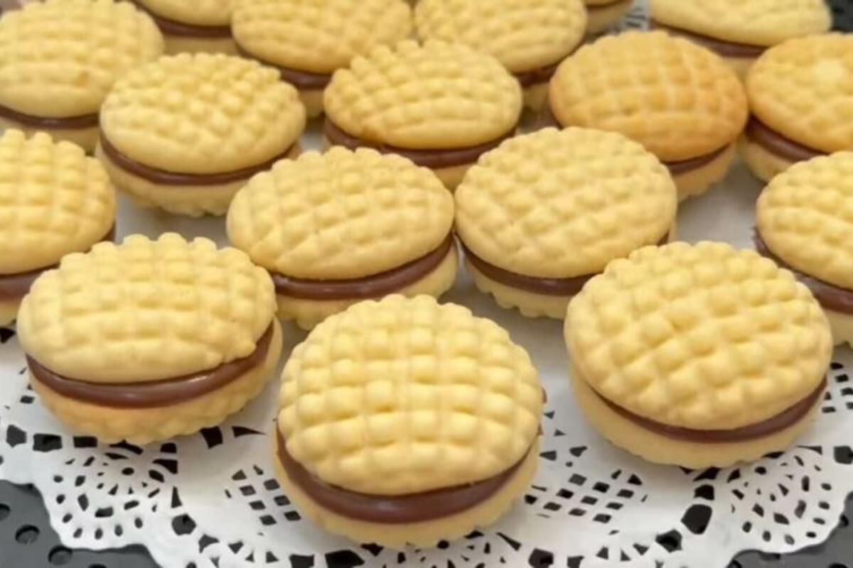 Okrenite prvi red vanilica na drugu stranu, pa ih bogato premažite nadevom i preko stavite drugi red vanilica. Tako radite dok ne utrošite sve sastojke. Ostavite da se stegnu u frižideru i ako želite možete da ih pospete šećerom u prahu.