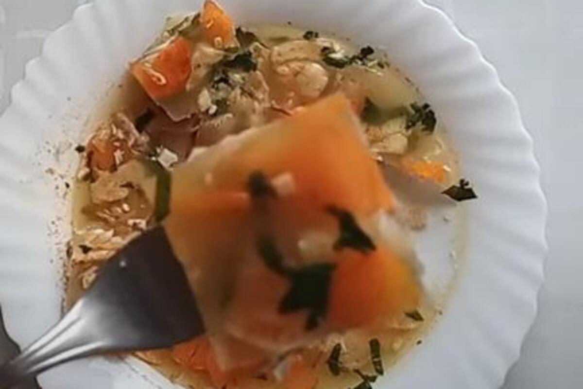 - Začinite čorbu u kojoj se riba kuvala prema sopstvenom ukusu i dobro posolite, a potom je pažljivo prespite preko poređanog povrća i mesa.