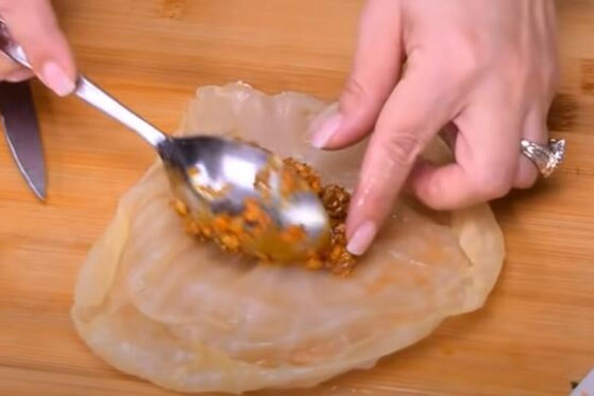 10. Prvo meso poklopite uzduž desnom stranom lista