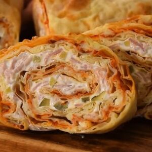 Fil: Izmešati 2 kašike kisele pavlake i 2 kašike sira. Preko prve kore premazati fil zatim naređati šunku isecenu malo deblje pa ponovo premazati filom.
