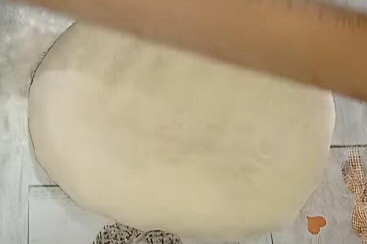 Stavite testo na sto posut brašnom i podelite ga na dva dela. Prvi deo razvaljajte što je moguće tanje, na oko 3 milimetra debljine.