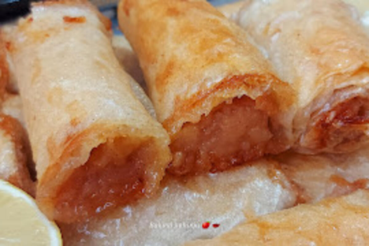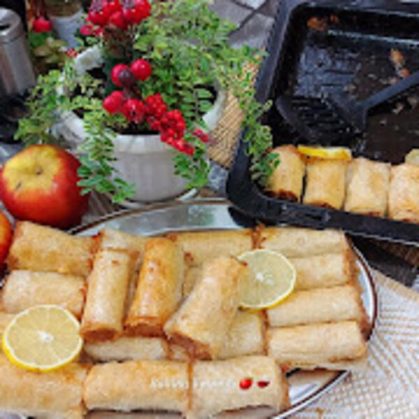 Urolati i ređati u podmazan peleh. Iseći na manje rolate i premazati uljem. Peci na 200 stepeni C oko 40 minuta da porumeni.