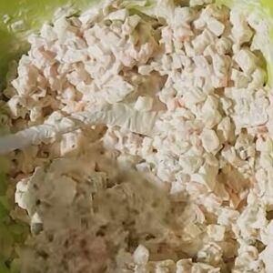 Podeliti na dva dela i oblikovati lopte, pa pokriti da odmori još 5-6 minuta. Razviti na pravouoginik. Premazati malo margarinom i iseći na trake 2 cm.