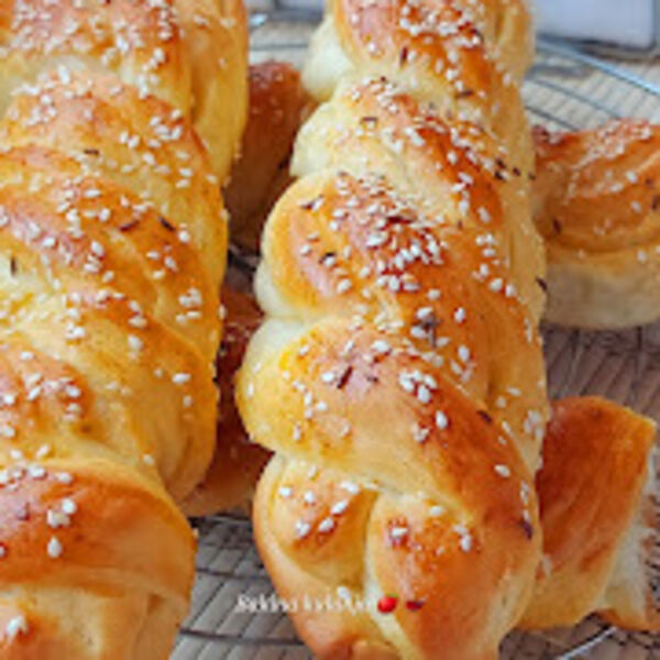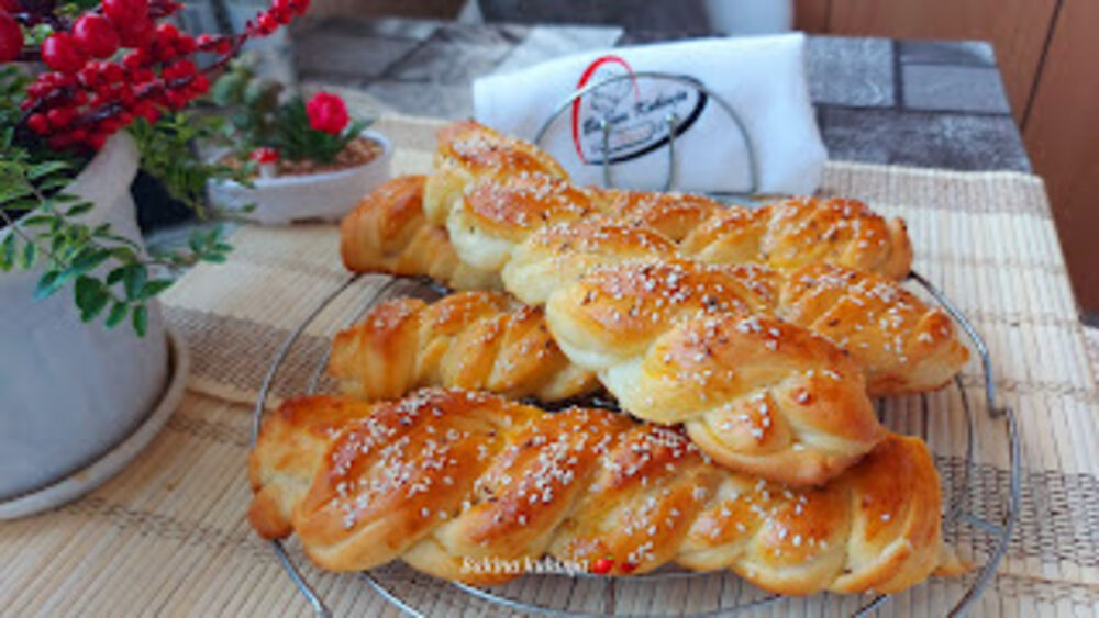 Prstinama pritisnuti kraj jedan pa uviti u pletenicu. Ređati u podmazan pleh i pokriti da odmara 10 minuta. Peći na 220 stepeni 35 minuta da porumeni. Pokriti krpom da omeknu.