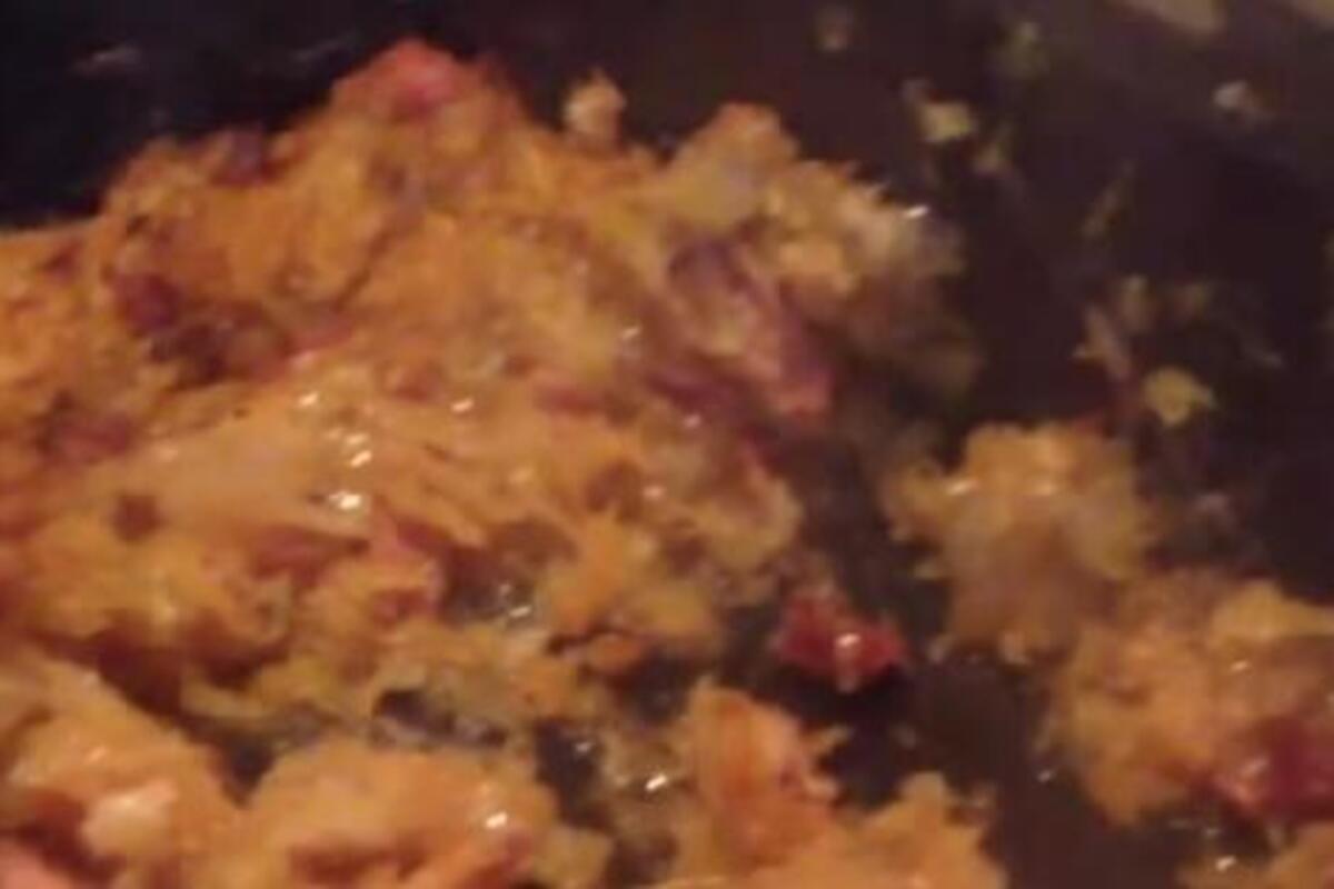 Najpre probajte kupus; ako je kiseliji nego što želite, properite ga. Ocedite ga i propržite na polovini ulja i dolijte sasvim malo vode. Kad kupus omekša, sipajte ga u pogodnu vatrostalnu posudu.
