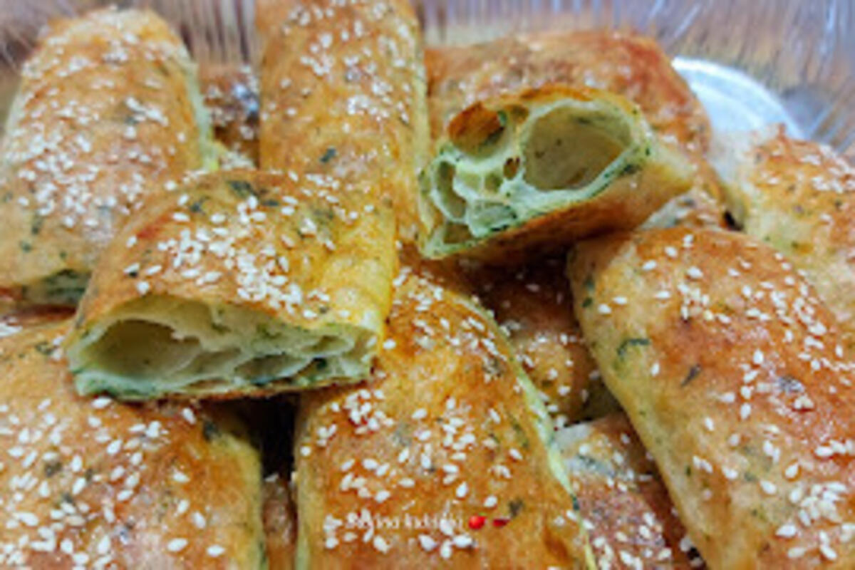 Raširiti koru pa staviti 2 manje kutlače nadeva i razvući sa četkicom dodati drugu i treću koru i premazati. Uviti u rolnicu i iseći na manje rolnice.