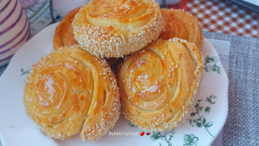 Razviti oklagijom u pravougaonik pa ga uviti u rolata i seći manje rolnice- Razbiti jaje a u manju činiju sipati susam Ivice rolnica provući u jaje pa u susam.