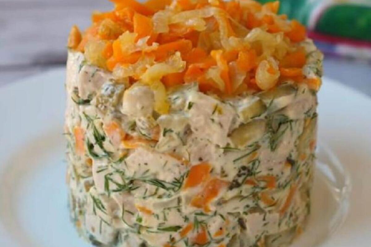 Slave i praznici su vreme kada se svaka domaćica trudi da napravi što ukusnija jela. Salate i slani rolati, kao i sve vrste predjela su najpopularniji, jer tu može da se pusti mašti na volju. Slavske salate kao što su ruska i mimoza su nezaobilazne, ali mi vam donosimo recept koji će vas oduševiti na prvi zalogaj. Napravite slavsku salatu sa svinjskim mesom, a dodajte i kisele krastavce i šargarepu. Ako želite da izgleda kao na slici koristite kalup za kolače i torte.