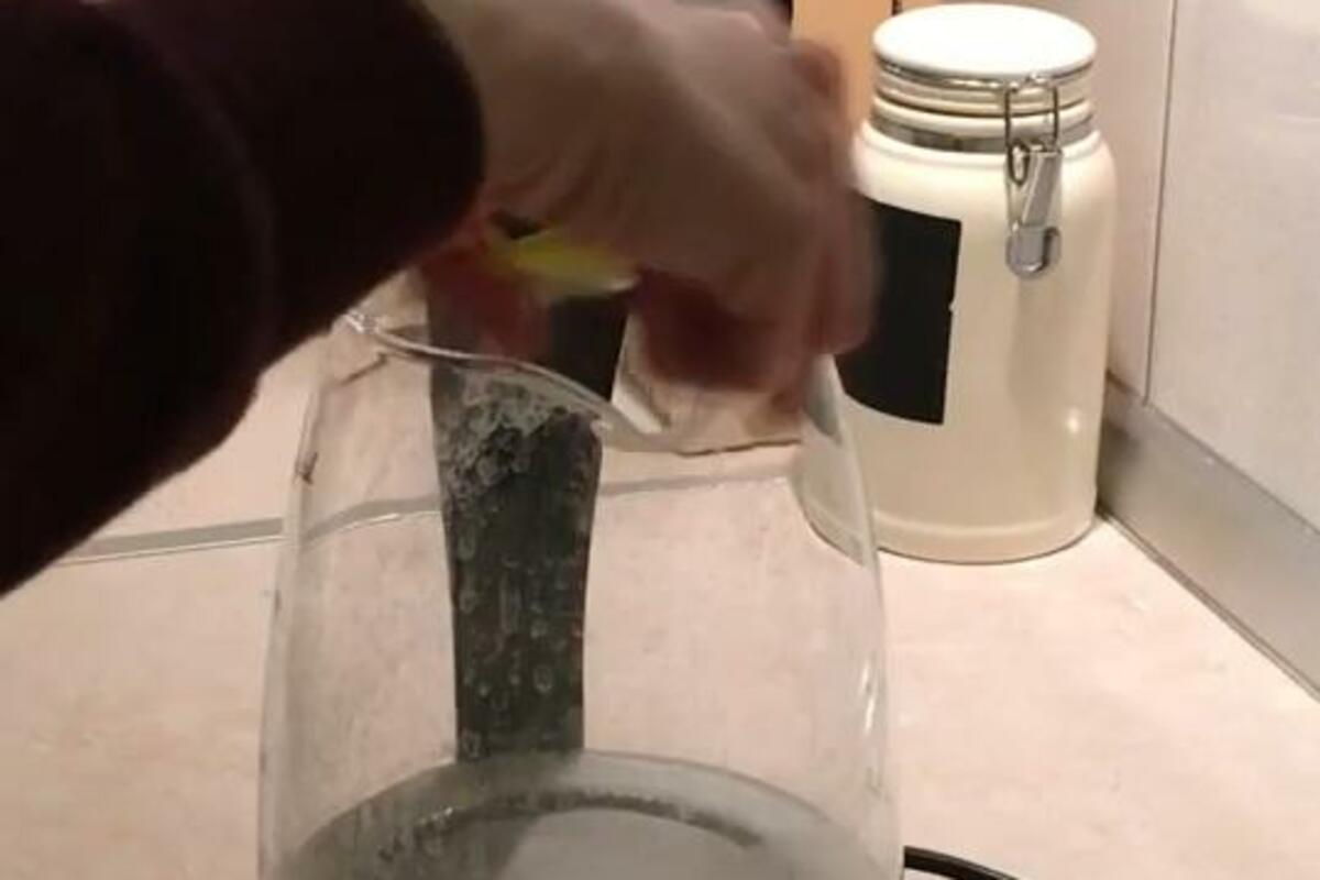 Napunite kuvalo otprilike do pola vodom, a zatim dodajte punu kašiku limunske kiseline u prahu. Uključite ketler i nakon što provri ostavite da se malo ohladi. Zatim otvorite poklopac i uklonite mali filter sa unutrašnje strane vrata (ako ga imate).