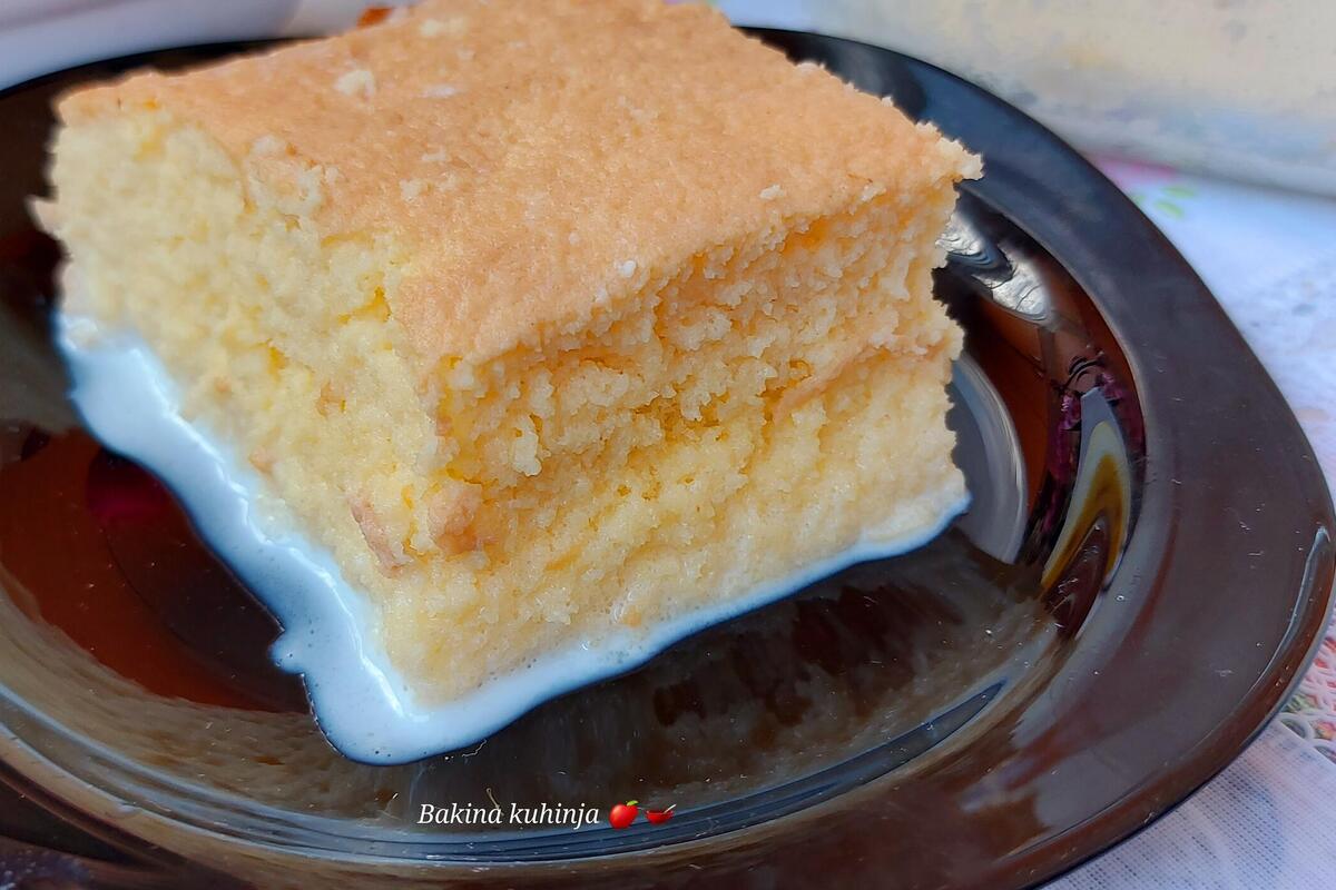 Umutiti jaja sa šećerom, dodavati griz i sve izjednačiti lagano mikserom. Pleh premazati uljem i posuti brašnom. Istresti testo u pleh i izravnati. Peći 20 minuta na 200 stepeni C