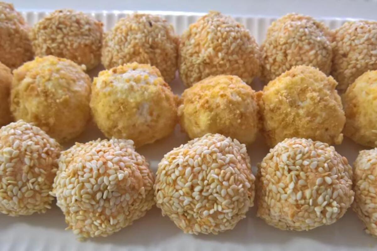 Oblikujte kuglice i uvaljajte u susam, pa služite.