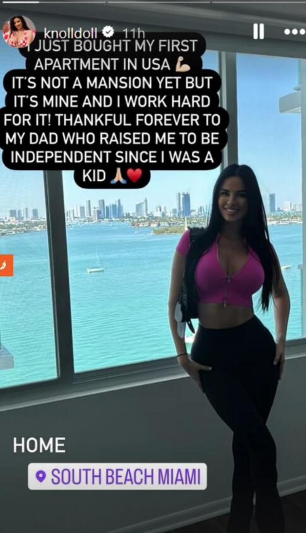 Ivana Knol pohvalila se kako je kupila svoj prvi stan u SAD-u. Knol, koja već neko vreme živi u Americi, objavila je u storiju fotku na kojoj pozira u svom novom domu u Majamiju. "Upravo sam kupila prvi stan u SAD-u. Još uvek nije vila, ali je moj i naporno sam radila za njega! Zauvek sam zahvalna svom ocu koji me odmalena odgajao da budem nezavisna", napisala je.