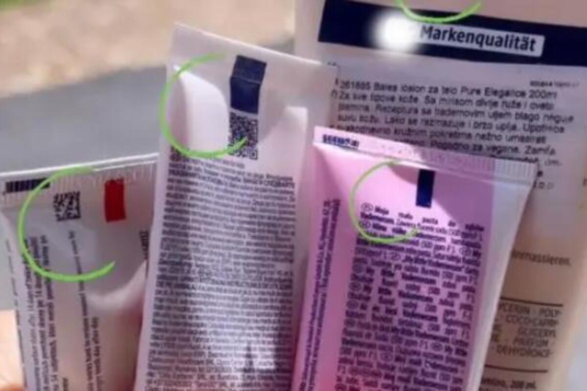 Kvadrati različitih boja na dnu proizvoda koji se pakuju u tubu ne pružaju informaciju o sastavu proizvoda potrošačima već pružaju informaciju koja je bitna tokom proizvodnje.