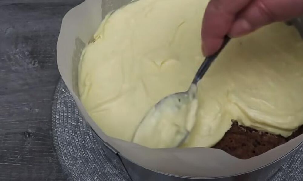 Drugi fil: Žumanca i šećer penasto umutiti, pa ih skuvati na pari. Pred kraj dodati čokoladu. Kad se istopi skloniti sa pare. Potom fil prohladiti, pa u ohlađen dodati penasto umućen maslac.