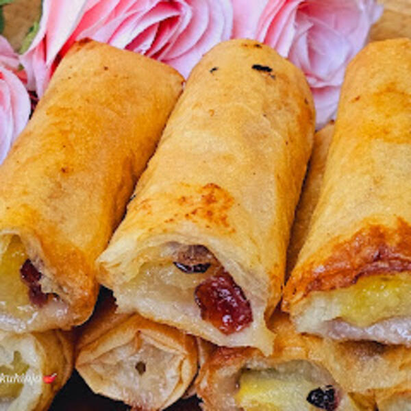 Dinje po želji pošećeriti. Uviti u valjak pa preseći na pola praveći manje rolatiće.