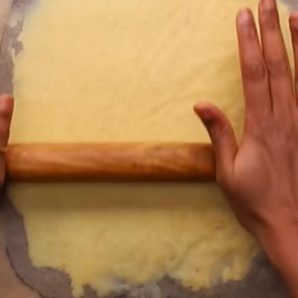 Na pek papir stavite malo putera i razvucite testo, tako što ćete i preko testa staviti papir i onda razvlačiti oklagijom.