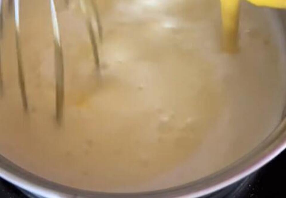 Mleko ostavite da proključa sa šećerom, a pečenu koru izbockate viljuškom i prelijete je mlakim mlekom. U malo mleka razmutite žumanca, brašno i gustin, a ostatak stavite da proključa sa šećerom, pa dobijenu smesu izlijete u proključalo mleko i neprestano mešate dok se ne zgusne.