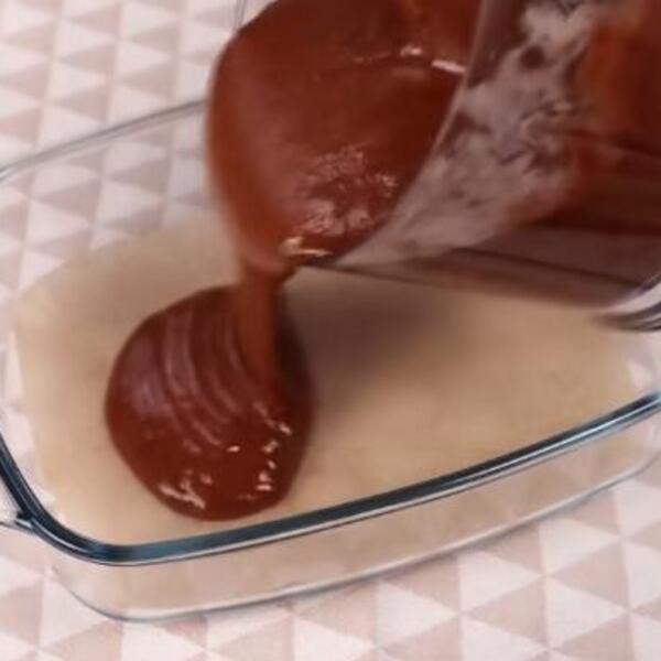Uzmite tepsiju i stavite papir za pečenje na dno i sipajte dobijenu smesu.