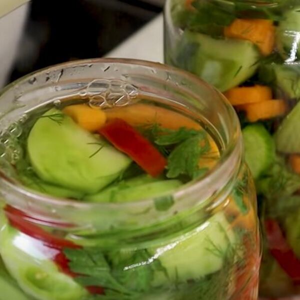 Operite sve sastojke, očistite ih od semenki i isecite. U posudu stavite sve sastojke za marinadu i dobro promešajte. Gotovi oprani i isečeni sastojci se stavljaju u duboku posudu, te se prelivaju marinadom, koju ste prethodno rastvorili.