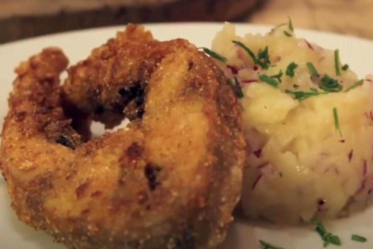 Pomešajte kukuruzno brašno i griz, zatim dodajte prezle i kašiku belog brašna, a na kraju i začine. U drugu posudu dodajte 5 kašika belog brašna, a u treću pivo. U dublji tiganj sipati ulje da se dobro zagreje. Uvaljajte ribu u brašno, umočite u pivo i dobro uvaljajte u mešavinu. Ispržite ribu u zagrejanom ulju i ređajte na ubrus da se ocedi.