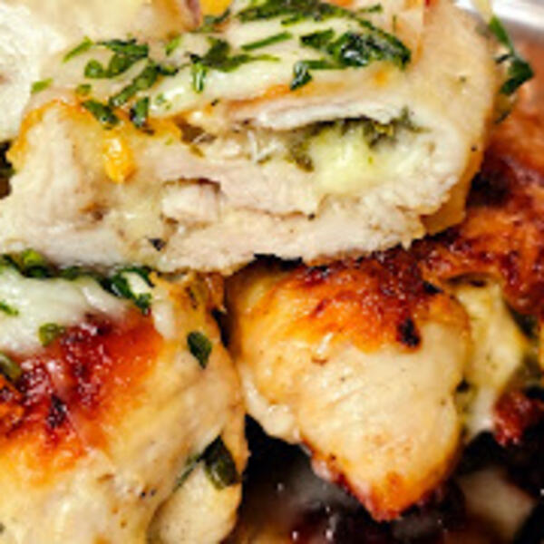 Izlupane šnicle premazati sa izdrobljenim belim lukok pa na sredinu staviti punu kašiku kačkavalja.