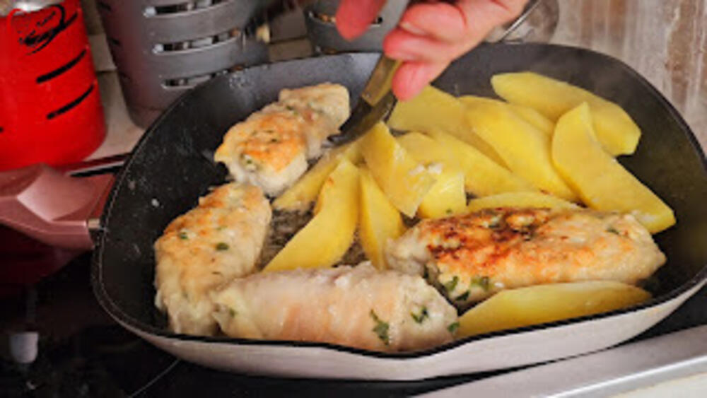 Saviti ivice i urolovati. U tiganj sipati ulje a rolnice uvaljati u brašno i pržiti ih u ulju poklopljene oko 20 minuta.