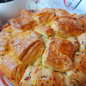- Podelite testo na dve kugle, pa jednu razvucite oklagijom u krug i secite u trouglove. Filujte kremastim nadevom po želji – džemom, kremom, sirom ili ajvarom – ili ostavite prazno, pa motajte kiflice i ređajte i po plehu koji ste obložili papirom za pečenje.
