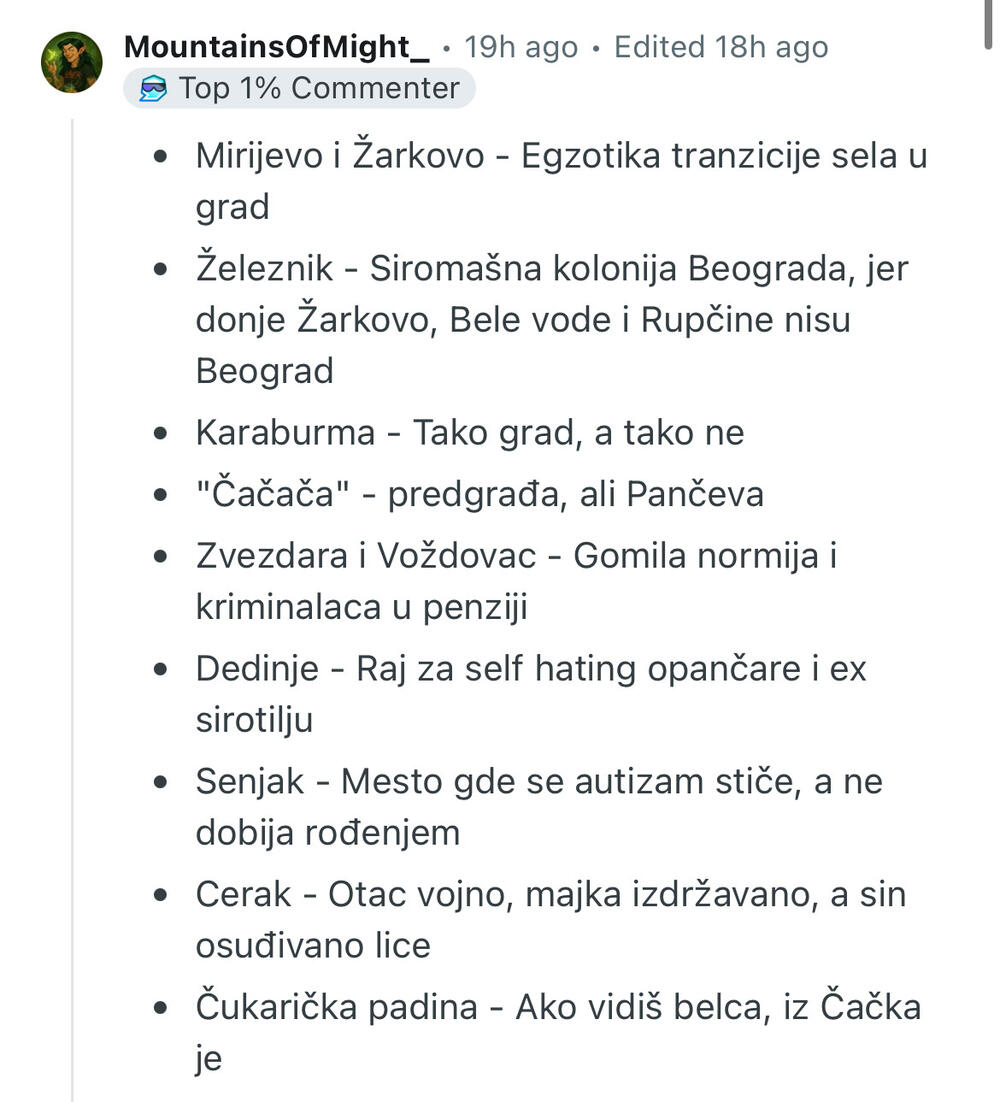 Kada je pre par dana jedan korisnik Reddita postavio jednostavno pitanje: „Stereotipi beogradskih opština/naselja?“ verovatno nije ni sanjao kakvu će lavinu komentara pokrenuti.