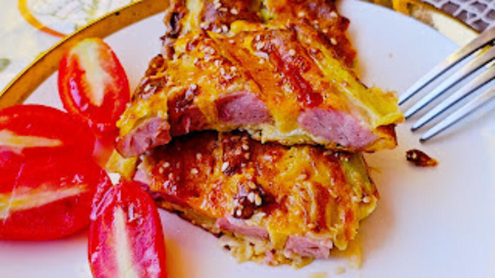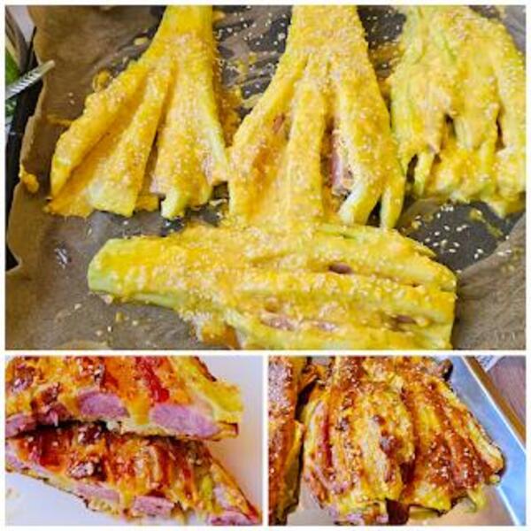 Lepeza tikvice, punjene sočnom šunkaricom i rastopljenim kačkavaljem, pečene u rerni dobijaju savršenu hrskavost spolja i mekoću iznutra.