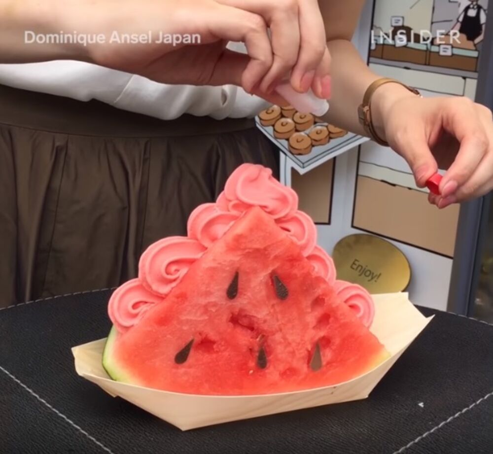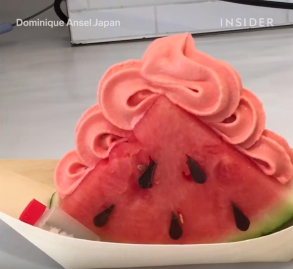 Japanska poslastičarnica ‚‚Dominique Ansel" u Tokiju ima fantastično letnje osveženje - punjenu lubenicu. I to punjenu sladoledom, sa čokoladnim košpicama sa strane.