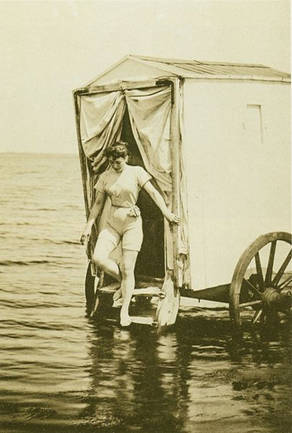 Ljudi u 18. i 19. veku nisu mogli tek tako da odu do plaže da se okupaju. Koristili su kućice za kupanje. Te kućice su bile pričvrćene na kolica i zapregama su vožena do plaža, tako su osobe mogle da se kupaju na miru, da niko ne bulji u njih. Ženske kućice su uvek postavljane na nekoj udaljenosti od muških kućica.