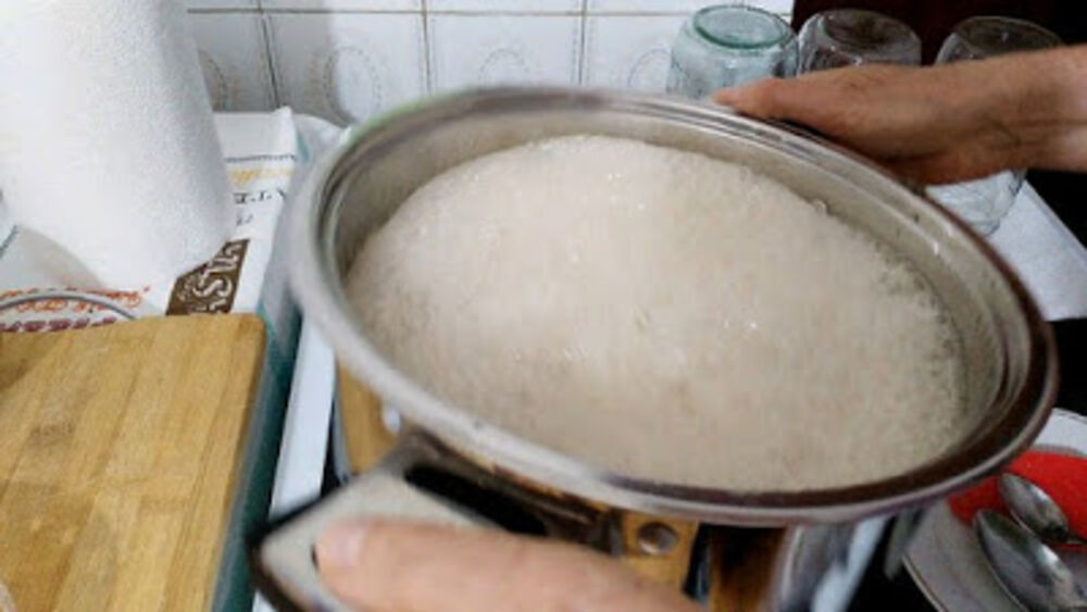 Dodati i vanilin šećer i grančicu rezetle (muškatle) kao i limun iseckan na kolutove. Kuvati oko 30 minuta dok se ne zgusne i izbiju gusti beli mehurići.