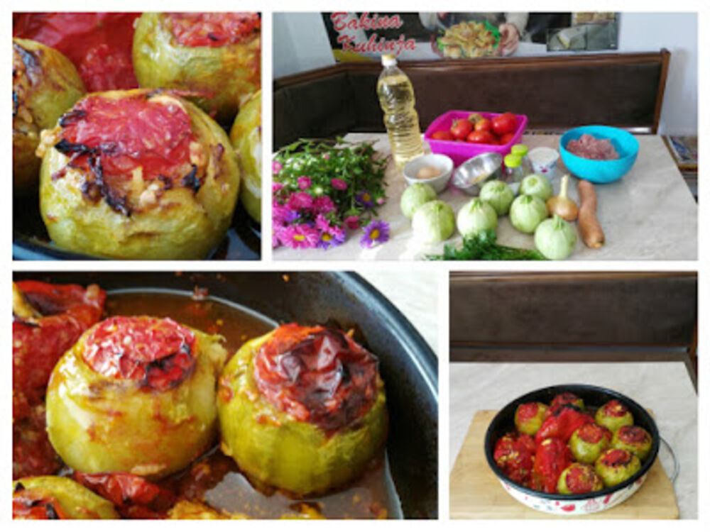 Na ulju ispržiti glavicu luka i rendanu šargarepu, pa kad se proprži dodati mleveno meso, začine, so, biber, peršunov list i dva jaja. Pirinač oprati pa i njega dodati. Tikvice očistiti ako su dugačke iseći ih na željenu veličinu pa ih izdubiti i puniti pripremljenim filom. Poklopiti krugovima svežeg paradajza. Peći u rerni na 200 stepeni C 40-45 minuta.