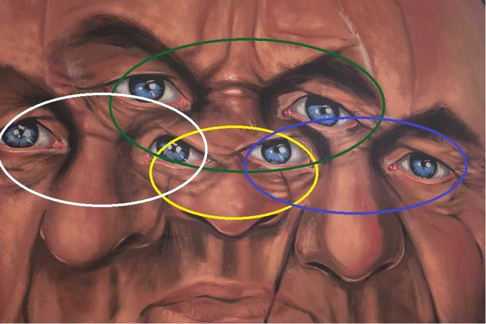 Nije teško odmah primetiti da se na ovoj slici nalaze četiri lica, ako ih niste već primetili pogledajte malo bolje, svako lice je označeno drugačijom bojom i ozbačava određene osobine.
