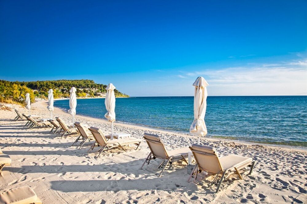 Na Halkidikiju je, kao i svake godine, potražnja za hotelskim smeštajem ogromna. U Uranopolisu, živopisnom letovalište na obali Singidskog zaliva, ističe se hotel Alexandros Palace sa 5 zvezdica i mnogobrojnim sadržajem koji svake godine oduševljava sve veći broj gostiju. Južnije, na Sitoniji, izbor hotela je još veći a najzanimljiviji su hoteli Meliton i Sithonia koji su deo spektakularnog Porto Carras resorta kao i Athena Pallas koji, kao i Porto Carras hoteli, ima pet zvezdica. Za one koji žele smeštaj po nešto nižim standardima izdvajaju se veoma udobni hoteli Elea Village i Lilly Ann sa po tri zvezdice.