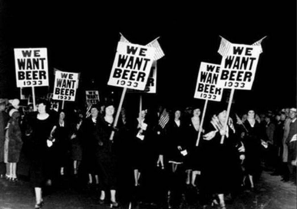 Ili fotografije kao što je bila ova. Nije protiv muškaraca, već – zajedno sa njima. Borba protiv prohibicije. Lepši pol se zalaže za pivo. Njujork, na ulici više od 130.000 ljudi.