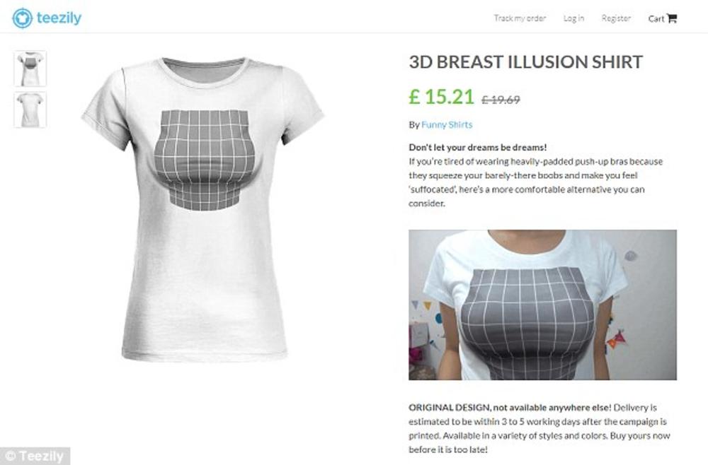 Na internetu su svi poludeli za "pametnom majicom", koja vizuelno uvećava grudi. Obična bela majica, preko poprsja ima crno belu mrežu, što grudi čini većima ukoliko ih gledate sa prednje strane.