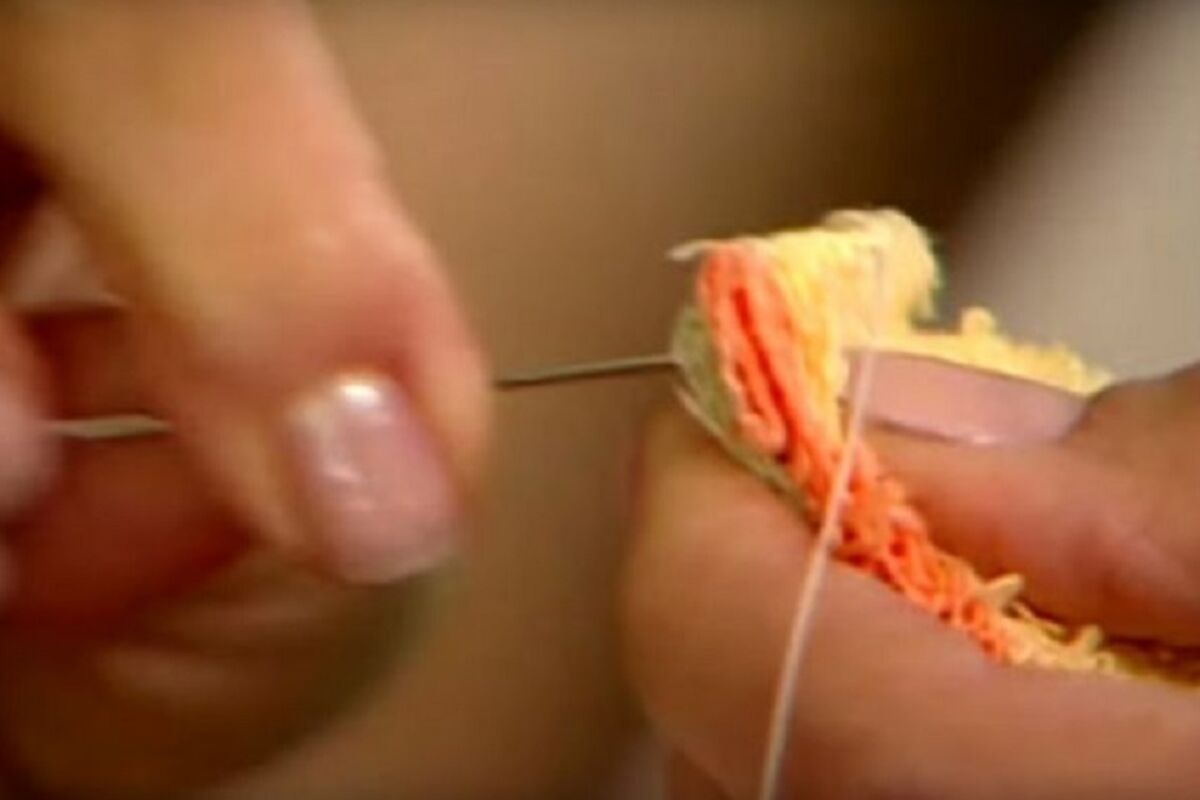 Printscreen/Youtube/HGTV Handmade7.Napravite i kružni oblik, a zatim ih prišijte iglom i koncem.