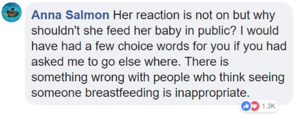 "Njena reakcija nije u redu, ali zašto ne bi smjela da nahrani bebu u javnosti? Ne bih ni ja birala reči da si mi rekla da se pomerim. Nešto nije u redu s ljudima koji misle da je neprikladno videti nekoga da doji."