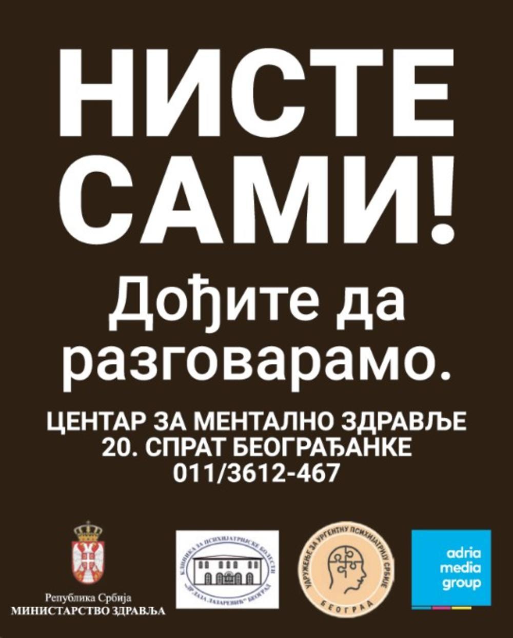 "Adrija medija grupa" je u saradnji s klinikom "Dr Laza Lazarević" u kampanji za podizanje svesti o mentalnim poremećajima i važnosti obraćanja stručnim licima za pomoć.