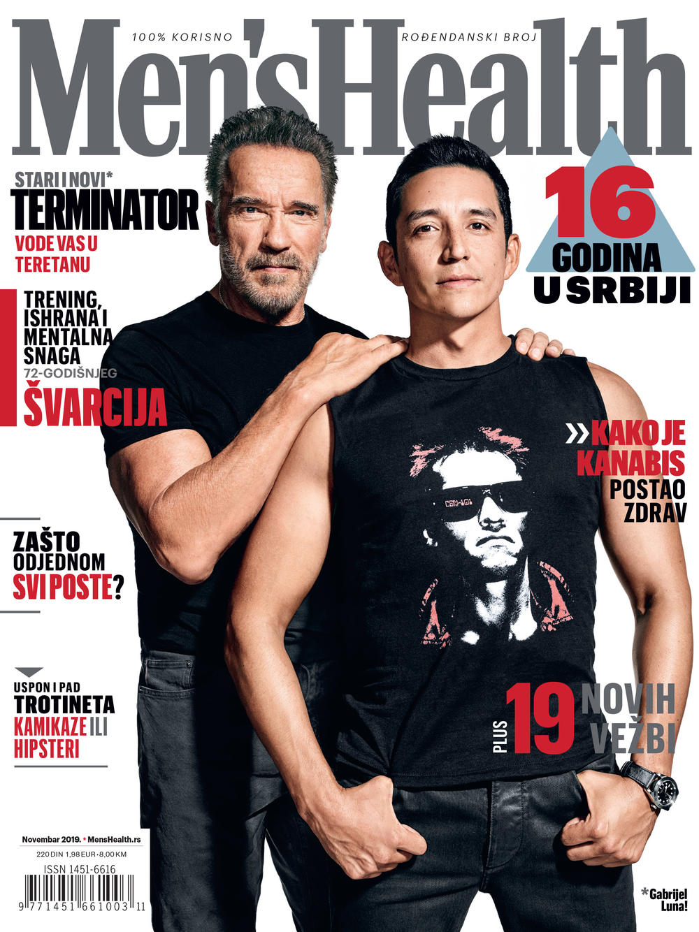 Premijum rođendansko izdanje časopisa Men's Health donosi ekskluzivnu priču sa legendom bodibildinga, glume i pop-kulture Arnoldom Švarcenegerom i njegovim naslednikom u novom filmu "Terminator: Mračna sudbina" Gabrielom Lunom.