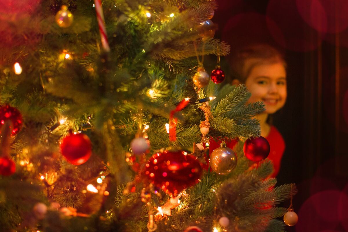 Otvor je prekrila prekrivačem, a jelku obavila lampicama, mašnom i ukrasima.