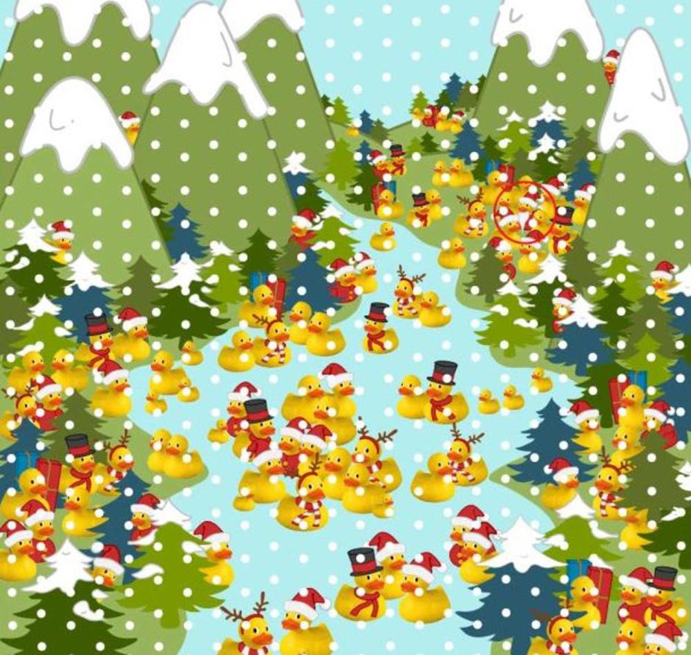 Ova je praznična mozgalica osmišljena u kompaniji Easy Bathrooms, a cilj je u njoj među pačićima pronaći jednog patka - sa belom bradom i odevenog u odelo Deda Mraza.