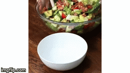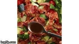 Priprema: Ispecite slaninu da postane hrskava, ocedite je od masti. U činiju stavite iseckane zelenu salatu, paradajz, krastavac, avokado i slaninu.